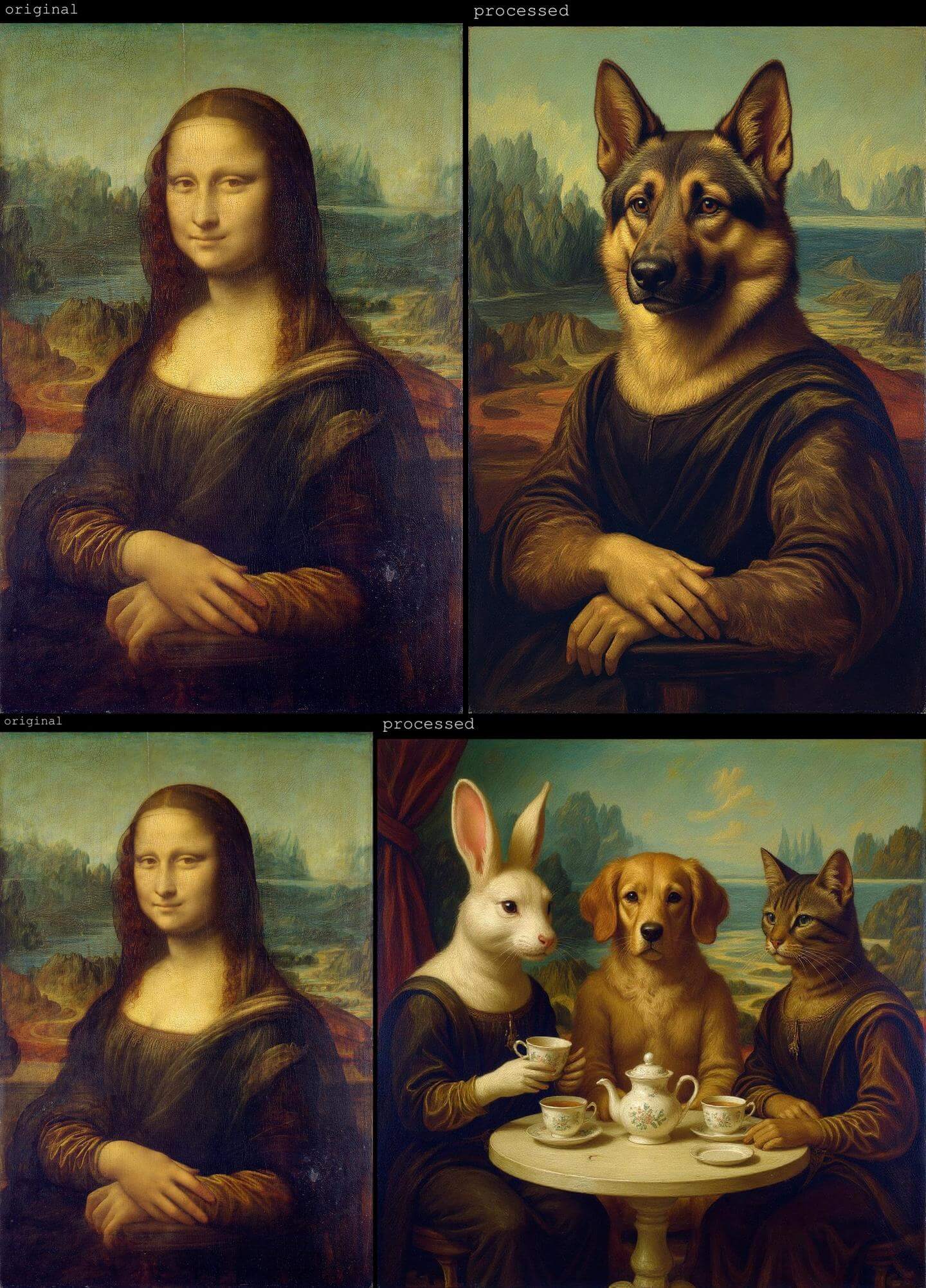 效果类似于 IPAdpter,可以根据上传图片的风格进行二创,整体的风格还原的很好,比如我下面基于蒙娜丽莎的二创