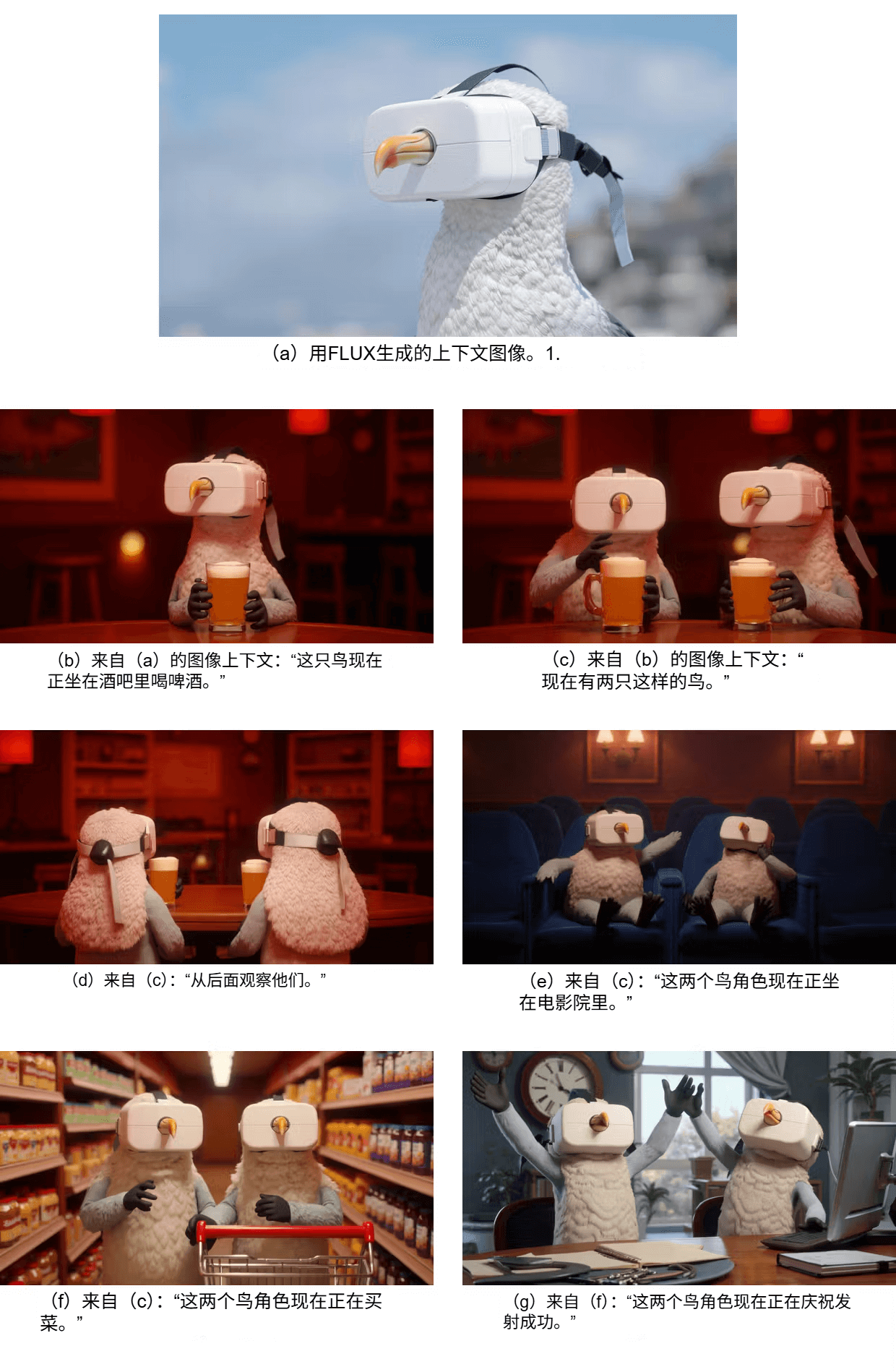 这里我就懒得跑素材了直接看官方 Demo,这一致性真的无敌了,在多次编辑和不同元素组合中还保持了人物、风格、场景的高度一致,非常适合拿去做视频分镜这类连贯性要求很高的场景